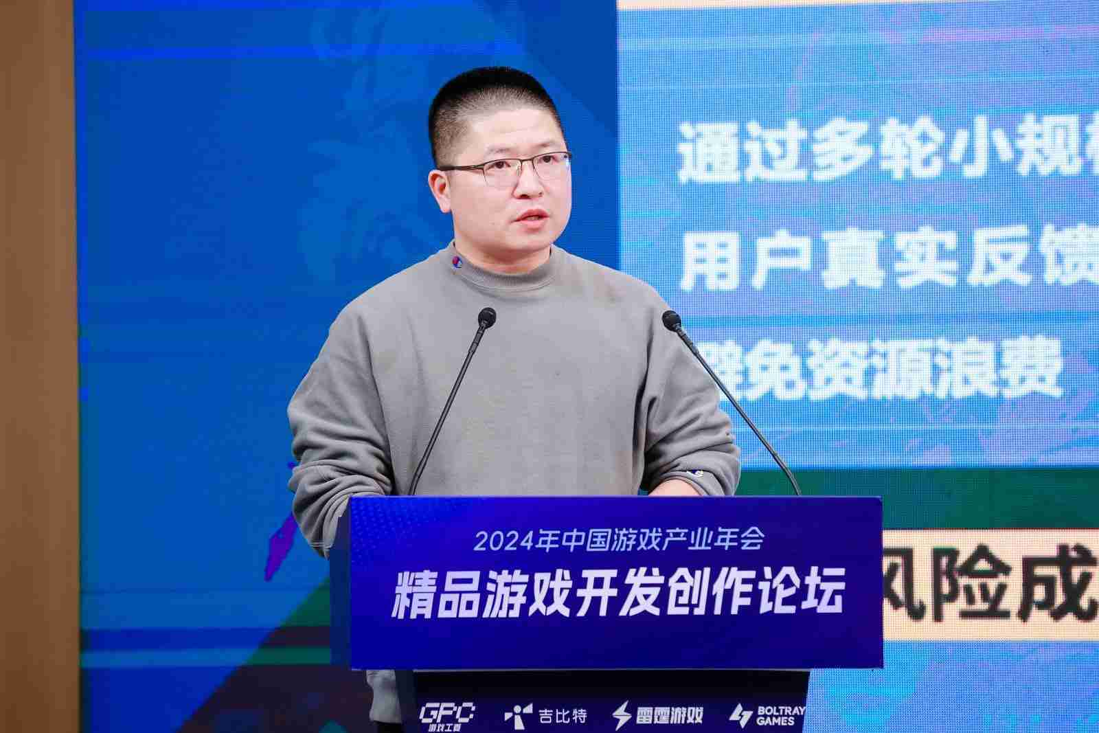 以《一念逍遥》为例,,,2018年公司创始人萌生想做修仙题材的放置游戏的想法,,,于是找了两位同事讨论了一下产品的概念,,,这两位现在是项目的制作人,,花了三周的时间把原型做出来,,,,并且确定最初的战斗原型,,,,以及整个养成的节奏。。。。通过几次版本迭代验证后,,,,也确定后面的内容应该怎么拓展,,,,最终在一年左右时间这个项目上线了。。当时我们内部有同事看到《⼀念逍遥》上线,,,,认为品质还不够完美,,但是整体营收还不错。。。就在想那是不是以后我们都做这样的产品???但实际这是错误的认知,,,,我们内部不是这么看的。。。。游戏在那个时间点上市,,因为有些市场的考量和营销点的考虑,,并不是希望所有项目都是这样。。如果它有更好的契机,,,希望它可以做得更大、、、更好,,希望在内核玩法确定之后,,,外围投入可以越大越好,,,所以后面的几个项目是往这个思路上做。。。