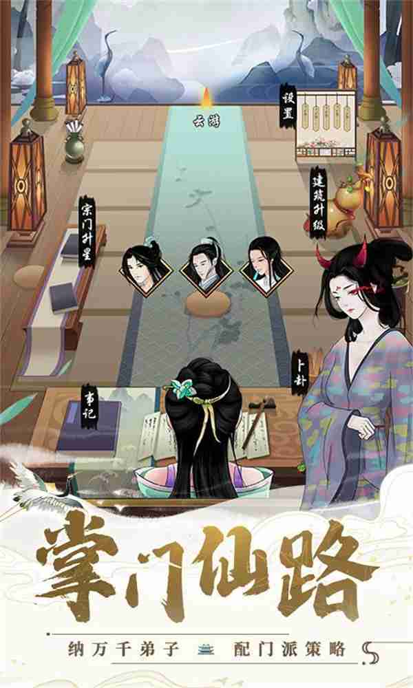 在游戏中,,,,玩家需要作为掌门去经营整个门派,,可以兢兢业业,,也可以做个甩手掌门,,或者不务正业,,,寄情山水……总之一句话,,,修仙不求人,,花式做掌门!!
